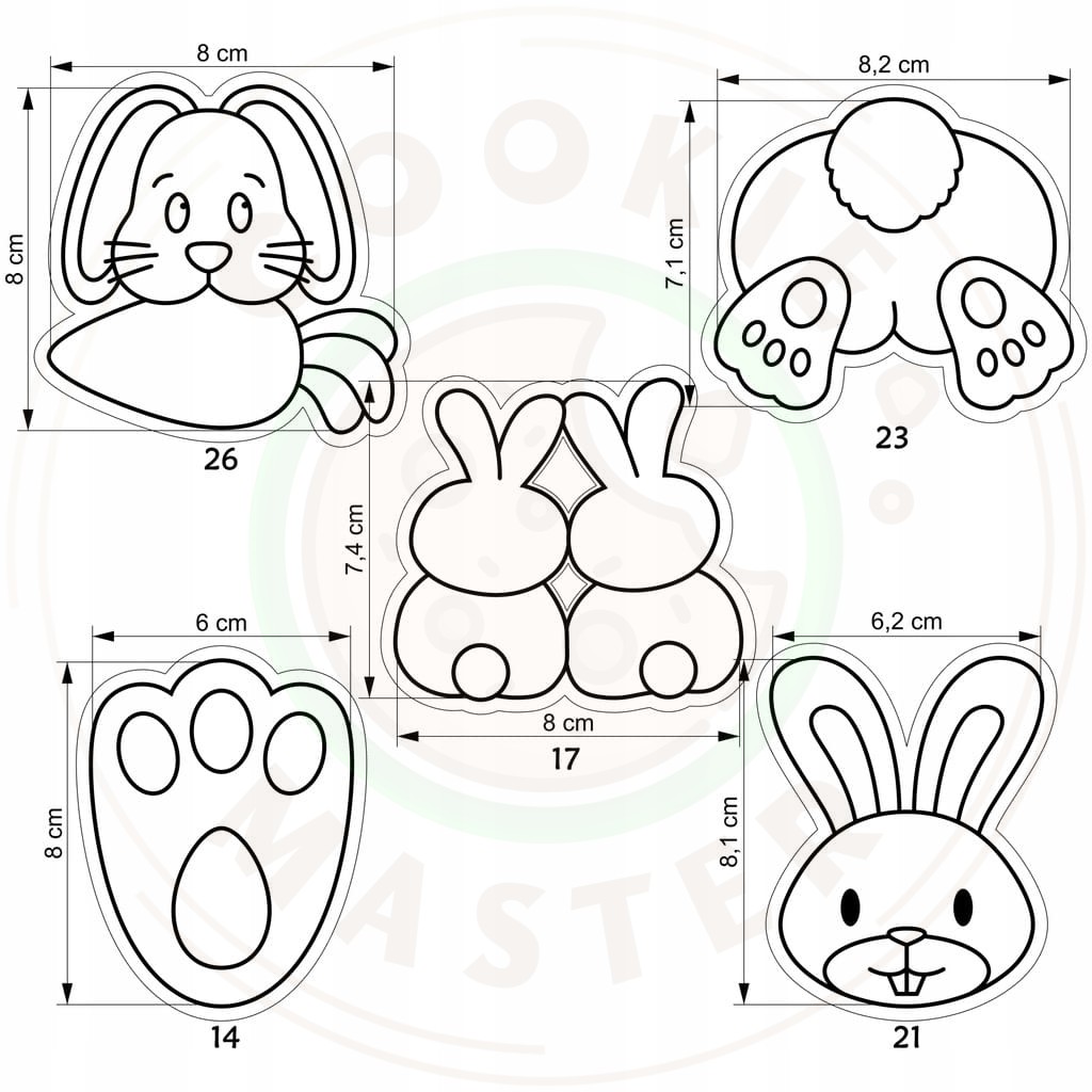 5x FOREMKI do pierników Wielkanocnych WIELKANOCNE Zajączki Zestaw XL 5szt