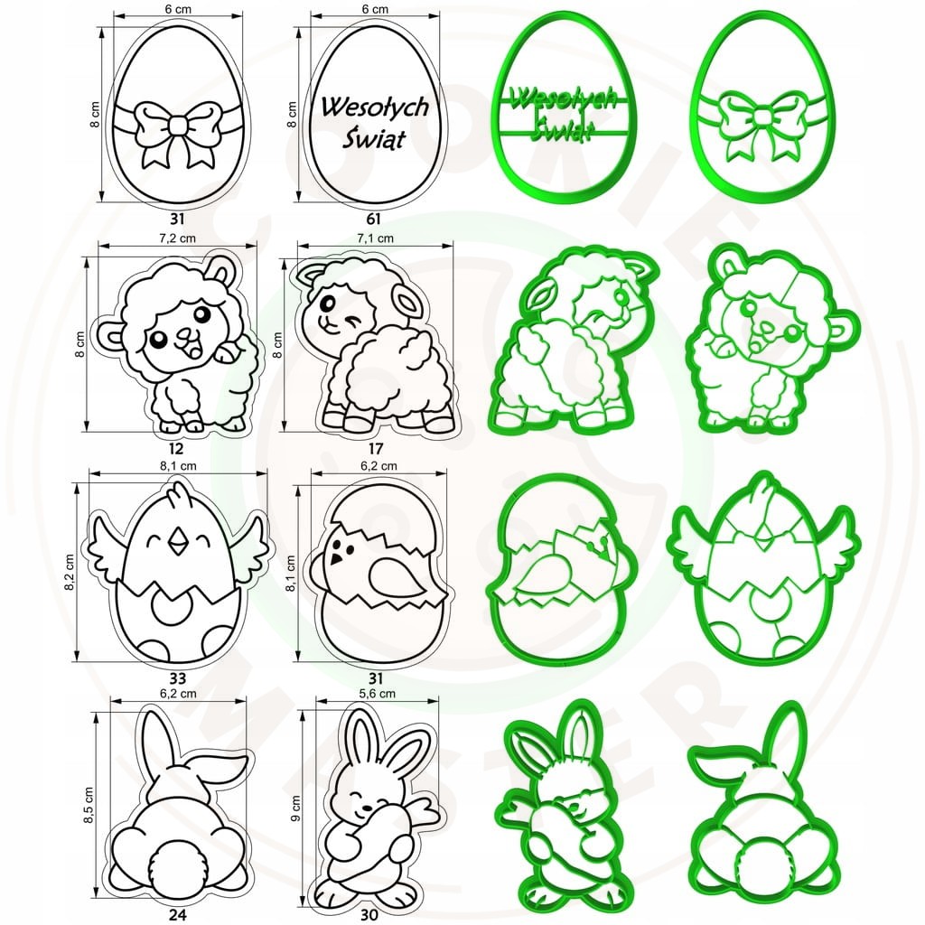 8x FOREMKI do pierników Wielkanocnych Wykrawacze WIELKANOCNE Zestaw XL 8szt