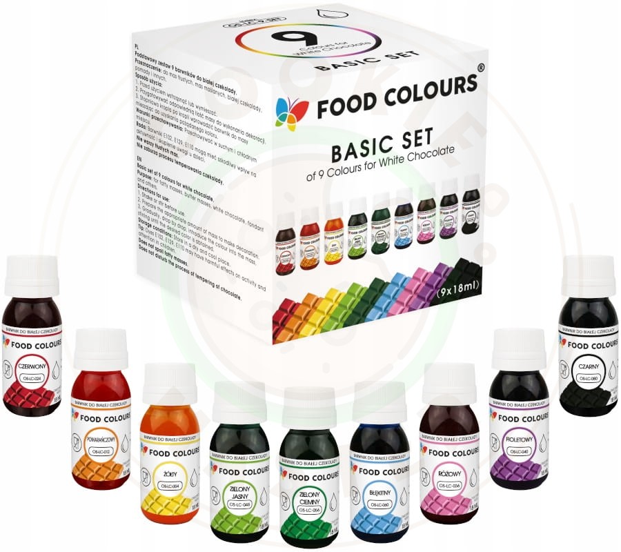 9x BARWNIKI DO CZEKOLADY i mas tłustych Jadalne ZESTAW 9 kolorów x 18ml