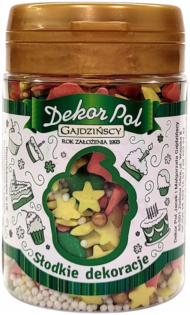 Słodkie posypki cukrowe do ozdabiania ciast, tortów, ciasteczek oraz pierników.
