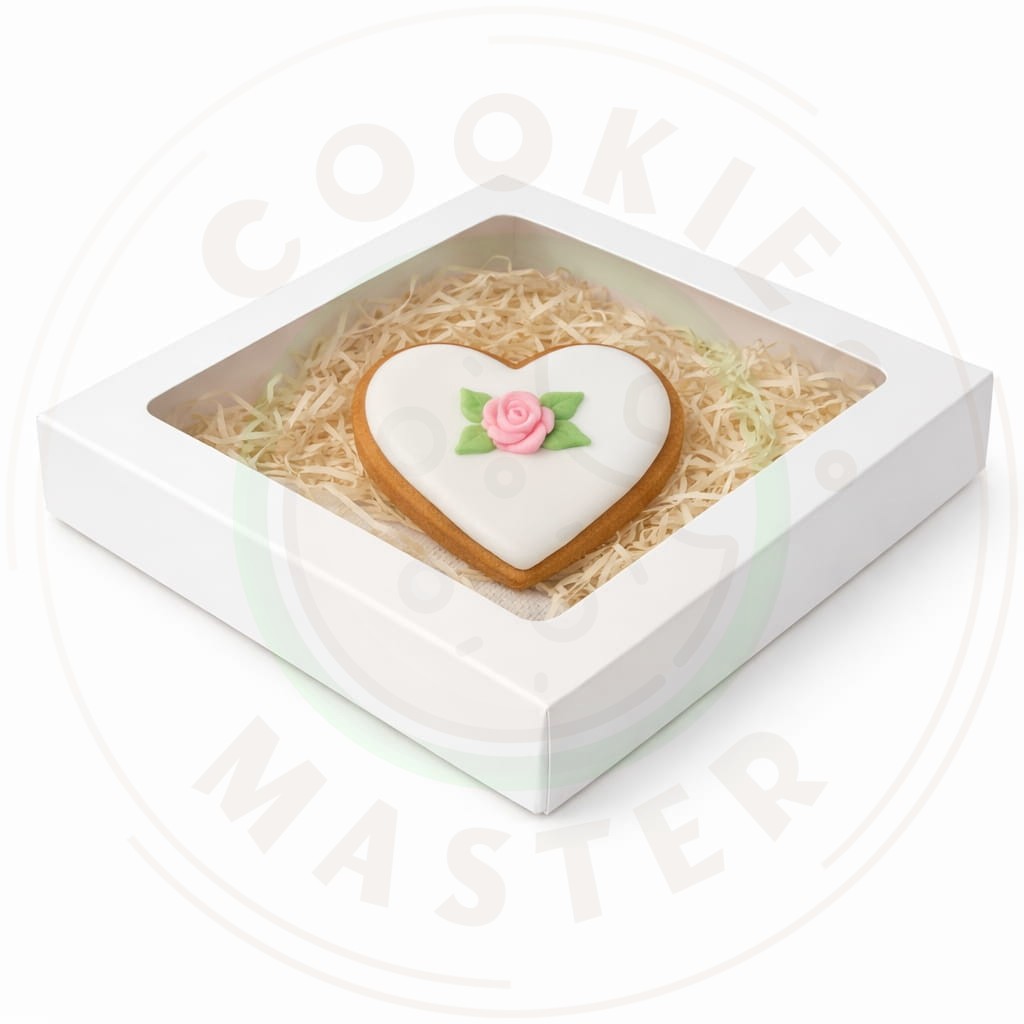 Eleganckie pudełko z okienkiem wykonane z trwałego kartonu pozwala estetycznie zaprezentować zawartość. Dzięki przezroczystemu okienku zapakowane wypieki lub upominki są widoczne, co dodatkowo podnosi atrakcyjność prezentacji produktu.