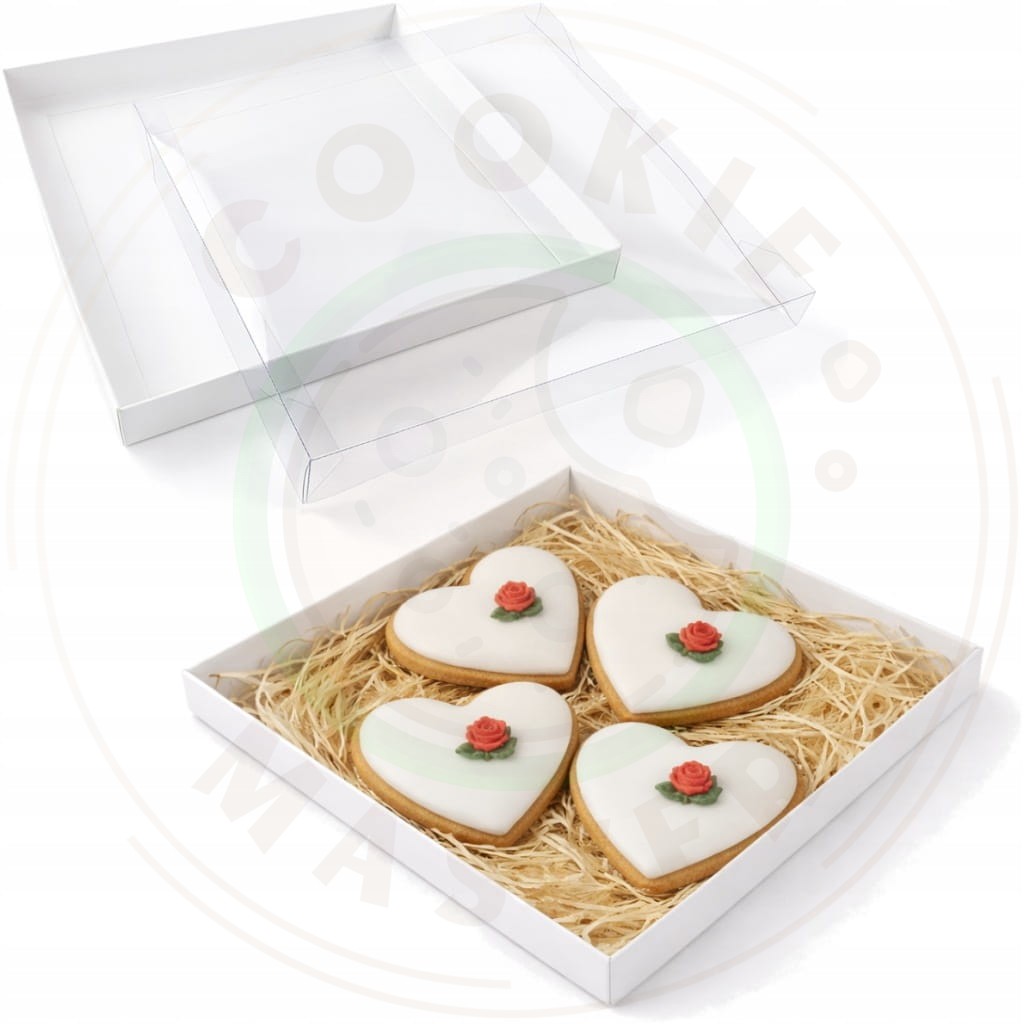 PUDEŁKO PRZEZROCZYSTE KARTONIK NA PREZENTY CIASTKA PIERNIKI BIAŁE 21x21x2cm